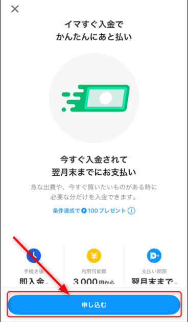 | 支払い方法 | 翌月末までに一括払い | アプリ内での返済など |