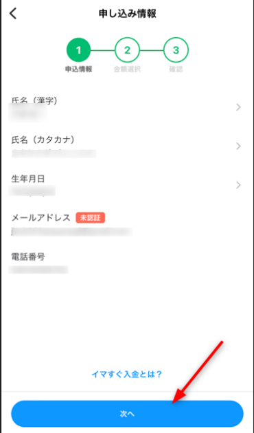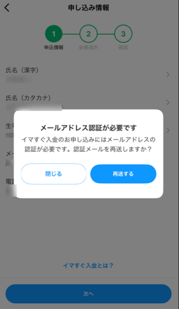 このとき、メールアドレスが認証を受けていないとイマすぐ入金を申し込めません。