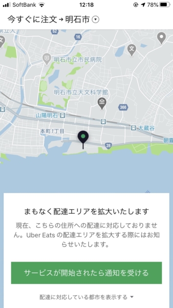 あれ、自分が住んでる場所がここに書かれてないねんけど、それってUberEats使えへってこと…?