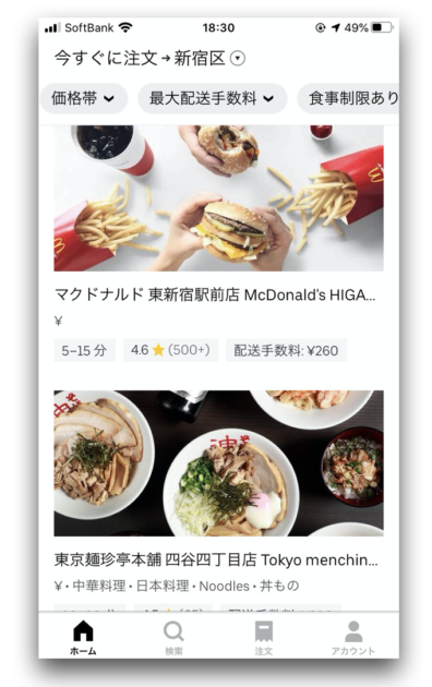 あなたの居場所から距離が遠くなると配送料が高くなりますが、他にも悪天候時やランチ・ディナータイムには「ピーク料金」が上乗せされます。