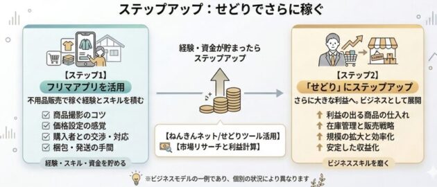 まずは身近な不用品販売から収益とスキルを着実に積み上げましょう。