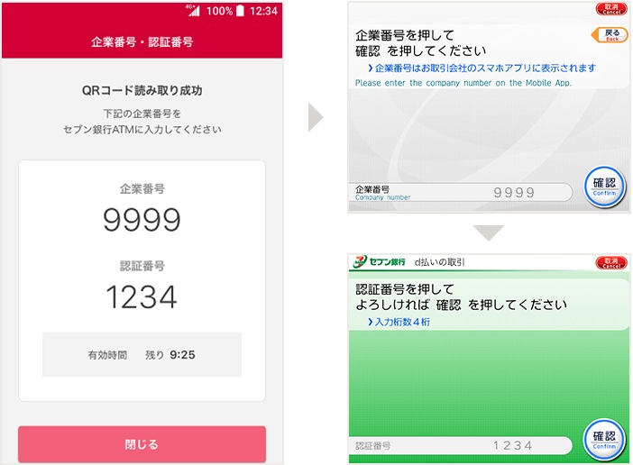 読み込みに成功すると、d払いアプリ画面に「企業番号」と「認証番号」が表示されます。