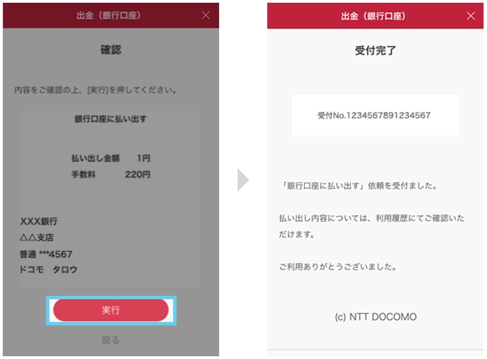 d払い残高は登録してある銀行口座に出金することもできます。