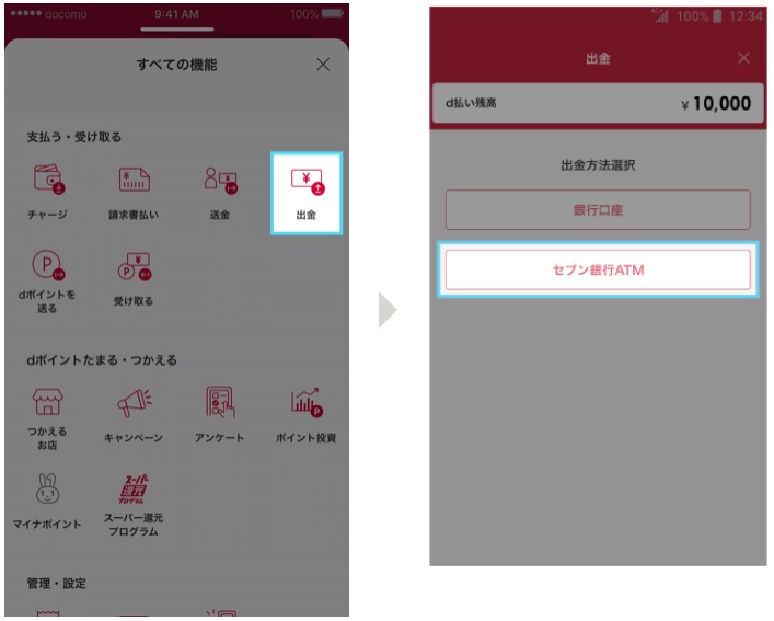 セブン銀行ATMにd払い残高を出金する方法